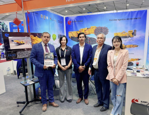展会期间,秘鲁阿雷基帕省副省长安娜·玛丽亚女士与阿雷基帕省能源与矿业部部长塔科工程师共同莅临上海科煤展位参观交流。塔科部长对科煤掘进机的技术水平与环保性能给予高度评价,称其“有望为秘鲁矿业注入绿色动力”。他表示,KAMY CHINA的设备理念与秘鲁及整个南美矿业绿色高效发展的方向高度契合。